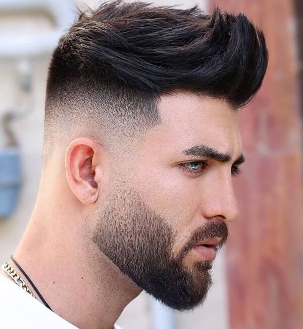 - Barba média ou cheia pede um corte que não seja muito “cabeludo” por cima — muitas vezes um fade, undercut ou laterais mais curtas para conter o volume.